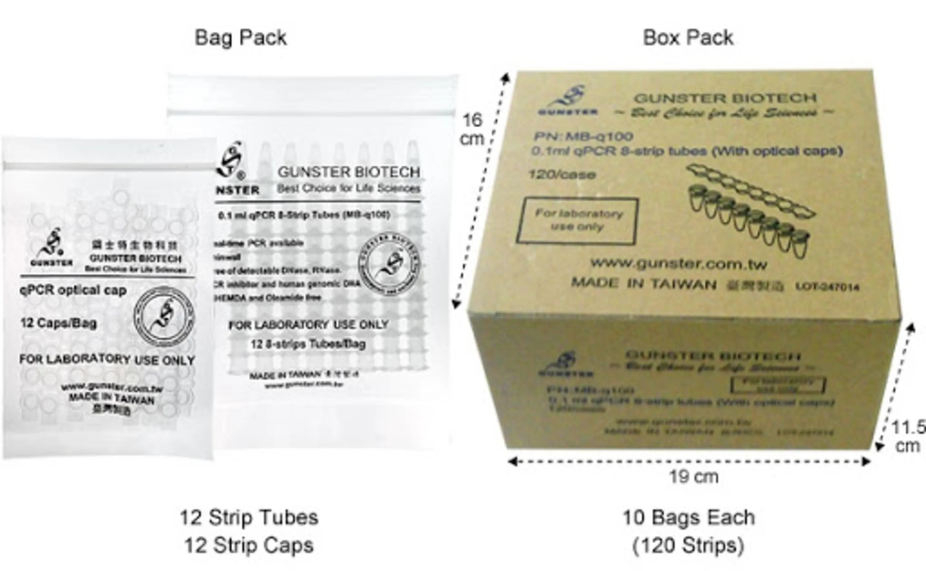 0.1ml qPCR 8-Strip Tubes White (With Optical Caps) - Gunster
