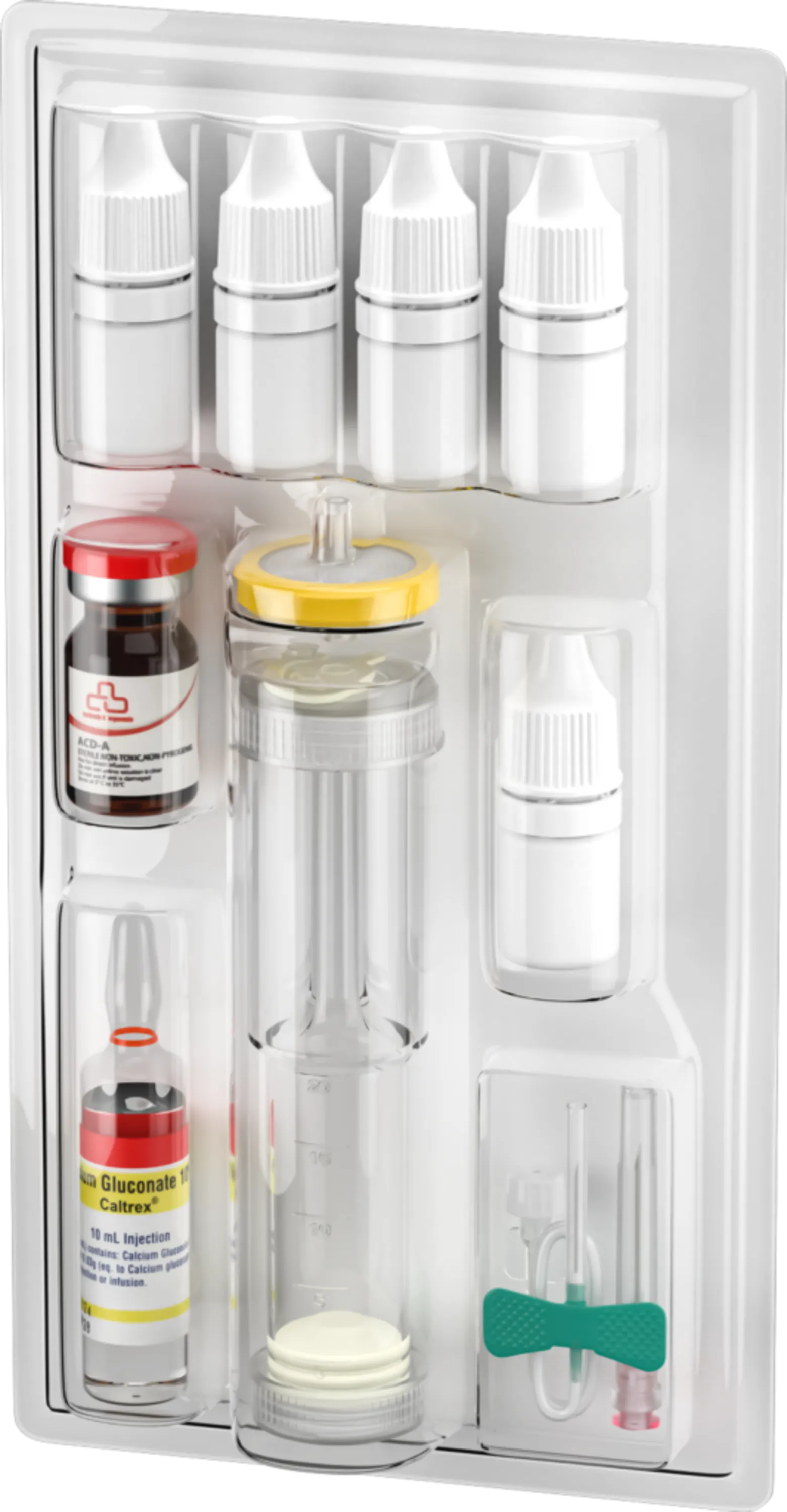 این کیت به منظور تهیه ی قطره های چشمی مبتنی بر پلاسمای غنی از فاکتور رشد یا PRGF توسعه یافته است.